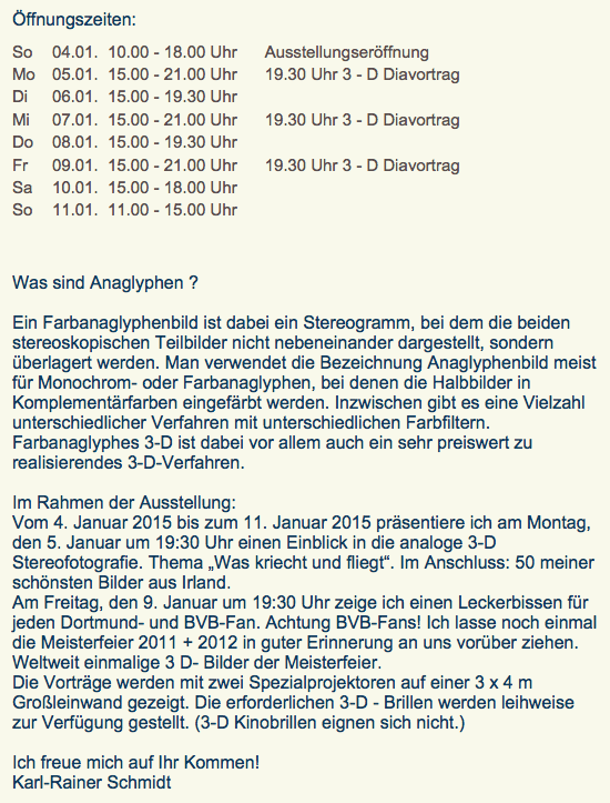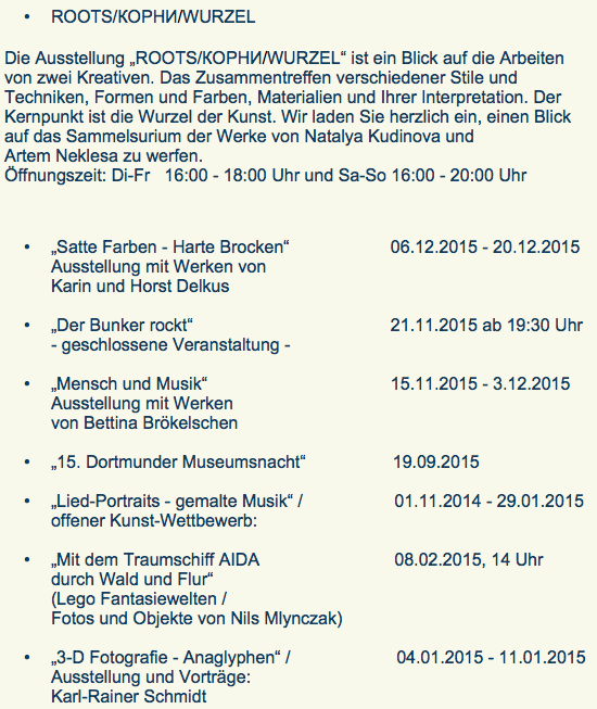 Die Ausstellung ist bis Ende des Jahres an jedem Mittwoch ab 15:00 Uhr bis 19:00 Uhr geöffnet (Ausnahme: 2. Weihnachtstag).