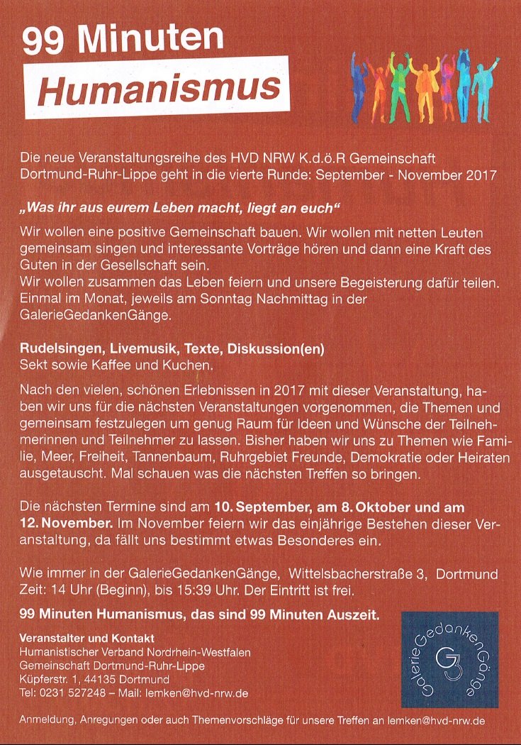 Sonntag, 2. Dezember 2018 ab 11:00 Uhr in der "GalerieGedankenGänge", Wittelsbacherstraße 3, 44139 Dortmund, kurz über die Bedeutung des gesprochenen Worts im öffentlichen Raum in Verbindung mit dem Thema Respekt - referieren und anschließend darüber mit den anwesenden Besucher*innen diskutieren.