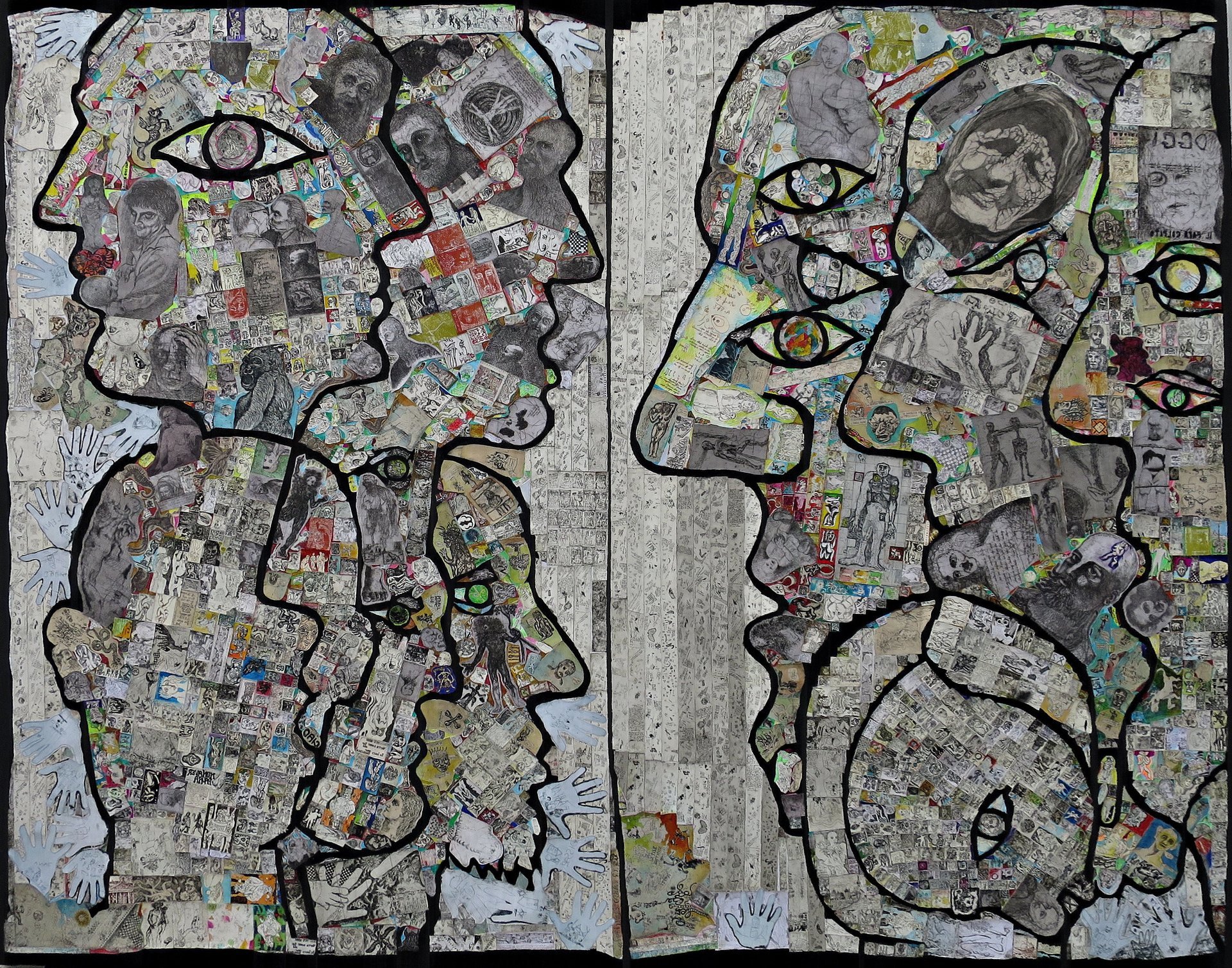 Bei diesen Werken handelt sich um eine Neubearbeitung einer Serie von Kupferstichen, die Schiaffino im Jahr 1981 begann und im Jahr 2015 wieder aufnahm. Sie wurden handkoloriert und in den Collagen neu arrangiert.
